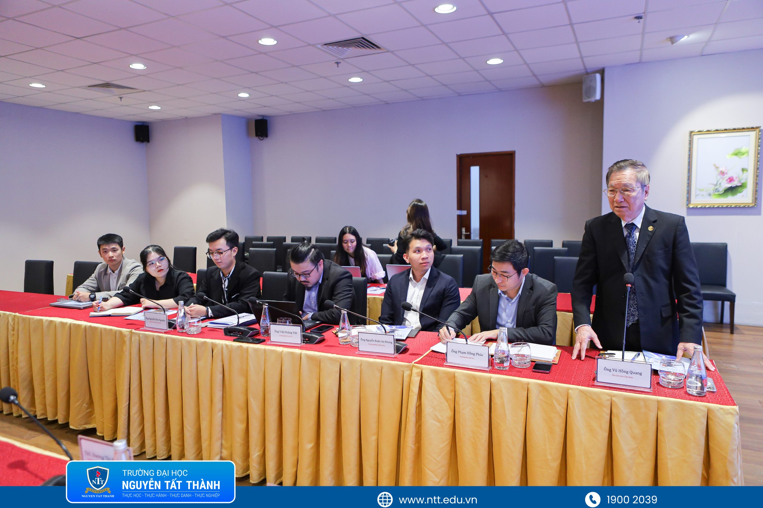 Về phía Trường Đại học Nguyễn Tất Thành, đoàn công tác tham dự buổi làm việc gồm có: TS. Nguyễn Tuấn Anh – Phó Hiệu trưởng; PGS.TS. Mai Hải Châu – Trưởng Phòng Quan hệ Doanh nghiệp và Việc làm Sinh viên; ThS. Dương Thị Kim Xoa – Phó Trưởng Phòng Quan hệ Doanh nghiệp và Việc làm Sinh viên; TS. Nguyễn Kim Quốc – Trưởng Khoa Công nghệ Thông tin; PGS.TS. Nguyễn Xuân Nhĩ – Trưởng Khoa Quản trị Kinh doanh; TS. Nguyễn Hữu Thuần Anh – Phó Trưởng Phòng Khoa học Công nghệ.